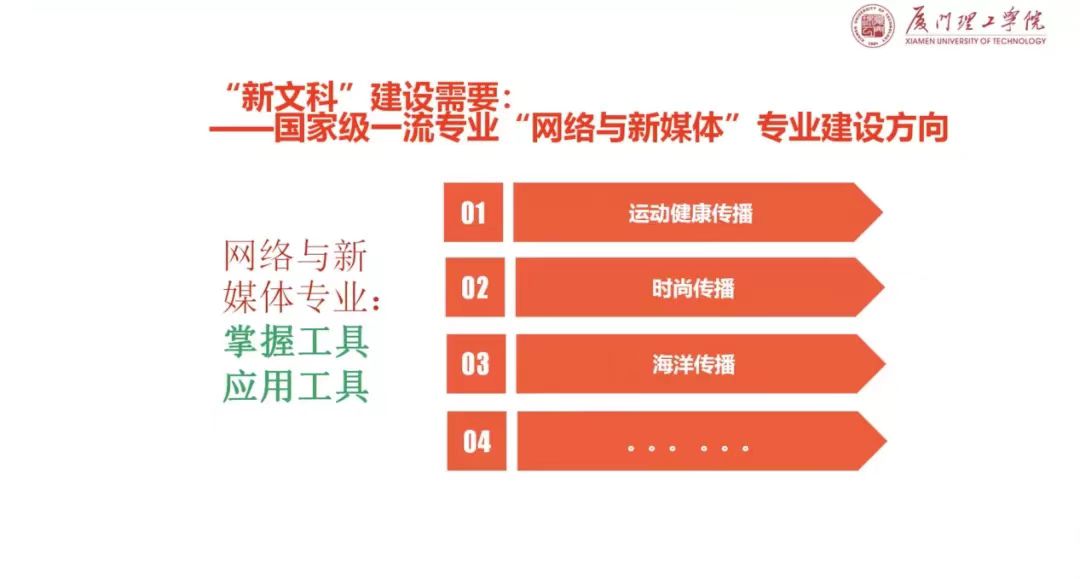 赵振祥教授提出网络与新媒体专业具有工具性,需要从掌握工具和应用工具两个方面建设这个专业,这个专业更强调应用,即“这个专业的落脚点在哪里、拿这个工具用来干什么”。网络与新媒体专业建设方向主要设置运动健康传播、时尚传播、海洋传播三个,本次讲座赵教授重点从项目背景、立项依据、项目内涵、项目特点、普惠共享、创新点、解决四大不足兼及意外收获、所获荣誉及项目支持八个方面重点介绍了运动健康传播方向。