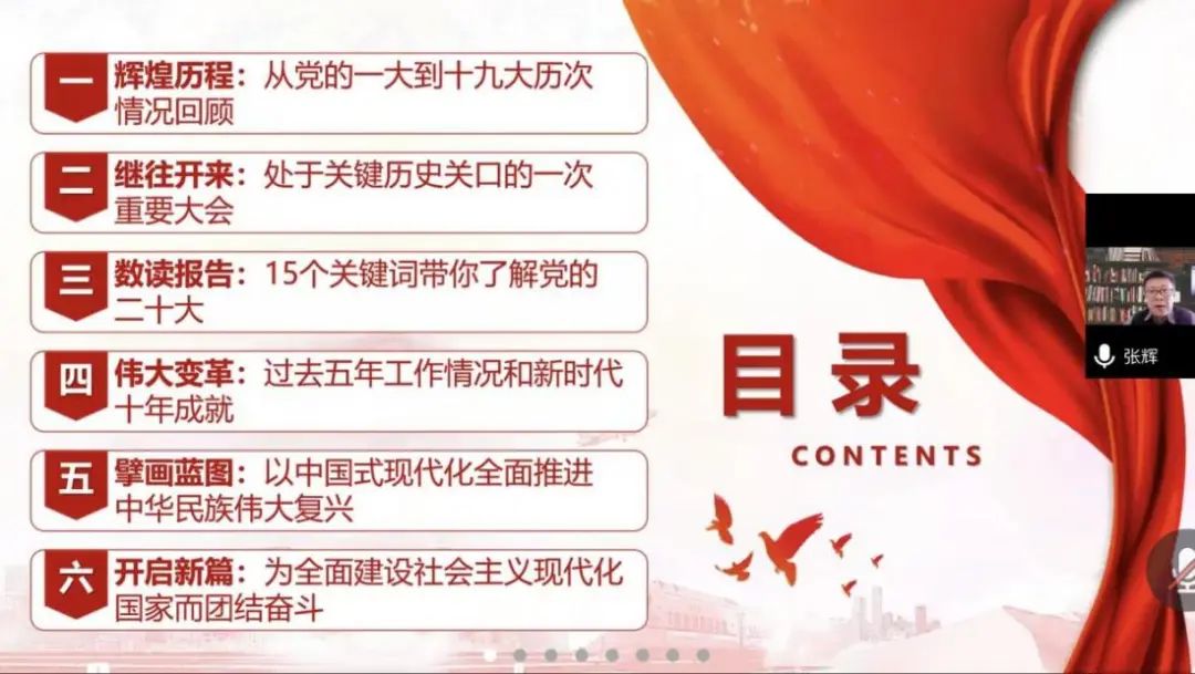 党委书记张辉组织学院全体教职工共同学习党的二十大精神,张辉从光辉历程、继往开来、数读报告、伟大变革、擘画蓝图、开启新篇六个方面向全体职工全面解读党的二十大精神。在会议中,张辉首先带领大家回忆了党从一大到十九大的历次情况,并强调党的二十大是处在关键历史关口的一次重要会。张辉强调,学习贯彻党的二十大精神要牢牢把握过去五年工作和新时代十年伟大变革的重大意义,要将贯彻党的二十大精神与日常工作结合起来,不断推动学院各项工作再上台阶。