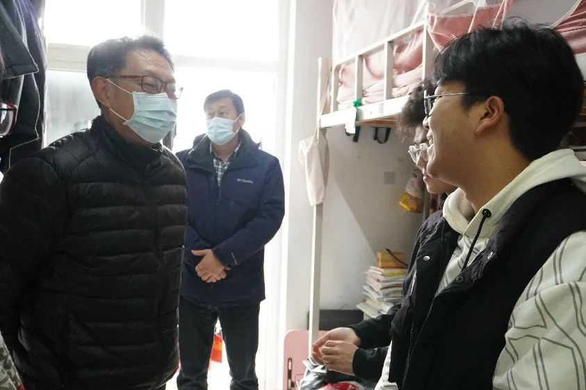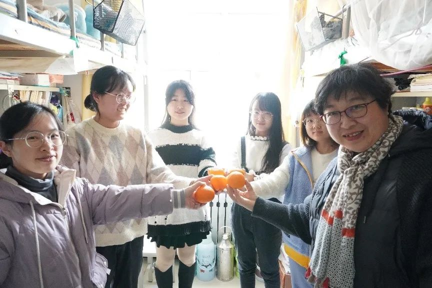 院长刘东方、党委副书记戚昕、团委书记马丰刚、院长助理高存玲走访了部分考研学生宿舍,与同学们交流近期学习生活情况,并为同学们送上了学院提前准备好的橙子。