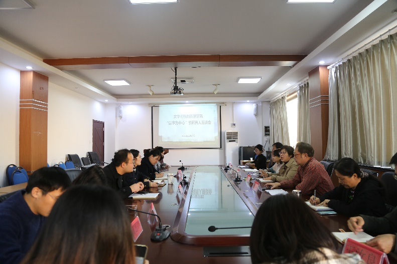 在博文楼五楼512会议室召开“以学为中心”协同育人工作座谈会,院长刘东方、院长助理耿志宏、中文系主任王汝良、中文系教师代表、院教科办、全体辅导员和学生代表参加座谈交流,会议由院党委副书记戚昕主持。