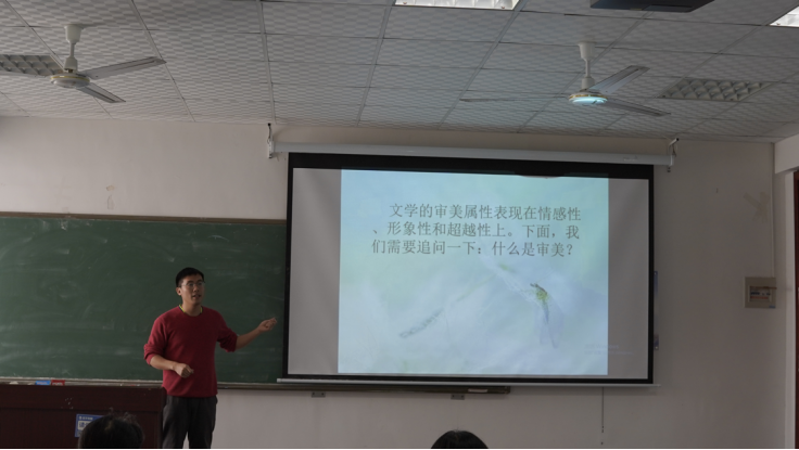 本次教学比赛以二十分钟片段教学方式进行。青年老师们在比赛中展现了丰富多样的教学内容、各具特色的教学风格和精湛的教学技能。于成老师向大家讲述了媒介批评,周思钊老师从“审美是什么”出发,结合学生日常深入浅出地了解文学概论,李霖老师以图文并茂的方式展现了微电影的概念与内涵,寓专业性和趣味性于一体,刘畅老师选择“讽刺文学”这一特殊的角度解读《聊斋志异》,娓娓道来,引人入胜。