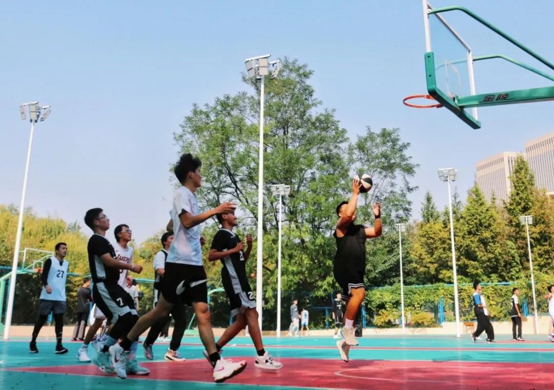秋季篮球赛在浮山校区西院篮球场举行。比赛分为本科生与研究生友谊赛和新生老生友谊赛,最终本科生队以33:21、老生队以89:57的比分获胜。