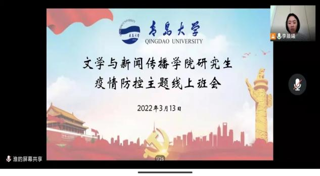 为了提高同学们对疫情防控的认识,了解相关的自我安全防护知识,疏导疫情防控下的学生心理,学院举行了研究生疫情防控主题线上班会。辅导员李晨曦老师从疫情防控要求、公寓卫生、思想引导三方面对同学们展开教育,帮助同学们调整个人心态,尽快适应生活节奏。疫情下的生活,对每个人都是一种挑战。在这样严峻的时刻,学院学工团队的老师们密切关注学生的动向和心理,用实际行动解决同学们的种种问题,用爱和关怀铸成了同学们最坚强的后盾。