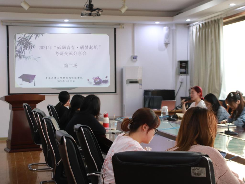 于博文楼五楼会议室举行了“砥砺青春·研梦起航”系列考研交流分享会,2017级优秀考研学子依次分享备考经验,2018级学生广泛参与,认真聆听。