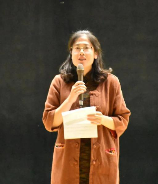 本次比赛分为选手齐诵、自由朗诵、随机朗诵三轮。比赛过程中,选手们展示出昂扬青春风采,为观众带来了一场视听盛宴。参赛选手朗诵结束后,评委老师对其表现做了点评与总结。谢新华老师在朗读作品赏析、思想感情分析、与观众交流互动等方面提出了中肯建议。傅炜莉老师则对朗读和服饰搭配技巧进行了指导。