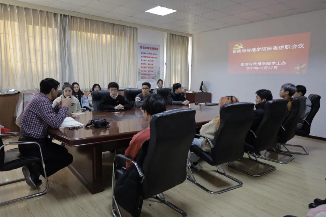 新闻与传播学院开展了班级工作述职会,会议由新闻与传播学院学工办主任马丰刚主持,各班级学生负责人均参加了此次会议。会议上各班级负责人介绍了2020学年的班级基本情况,并指出班级存在的优点和不足之处,提出了解决措施和对班级未来的规划。
