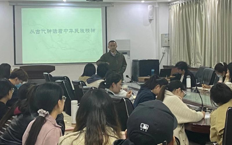 翟景运就“从古代神话看中华民族精神”做了演讲。通过夸父逐日、愚公移山、大禹治水等神话故事揭示了中华神话蕴含着民族成长的基因密码和中国精神。激励大家继承中华文化传统,坚定文化自信,增强四个意识。