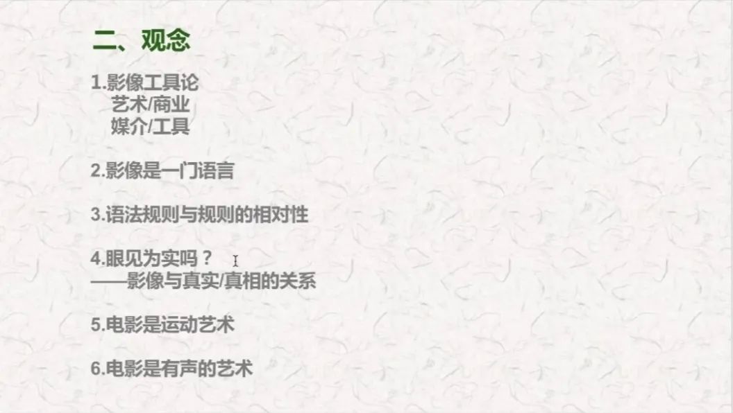 接下来,樊教授分别从"影像工具论"、"语法规则与规则的相对性"等方面讲解了"影像"的各类观念。"我们说电影是运动的艺术,‘运动’是其最根本的特点,但是这里的‘运动’并不只有机器运动,还应该有信息的流动,就如同声音也不止口头语言,还有各种音效等。"