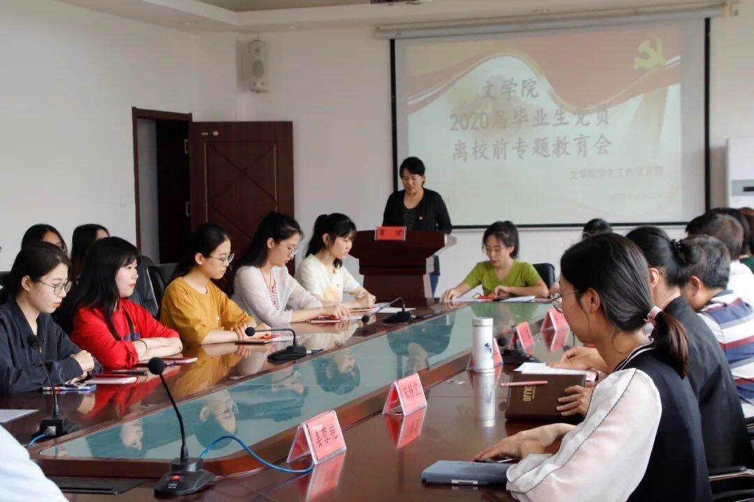 6月12日下午,文学院在博文楼五楼会议室举行2020届毕业生党员离校前专题教育会。学院领导、教师与30余名毕业生党员齐聚一堂,共话青年党员的使命与担当。院团委书记曹珺主持会议。