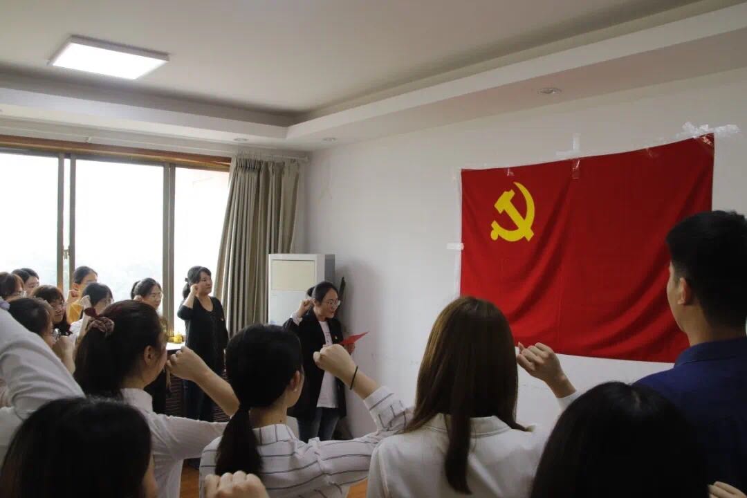随后,由2019级辅导员宋静宜领誓,全体党员面向党旗,庄严地举起右拳,重温入党誓词。一句句誓词,让党员铭记党的性质与宗旨,立志在新的人生起点上奋发图强。