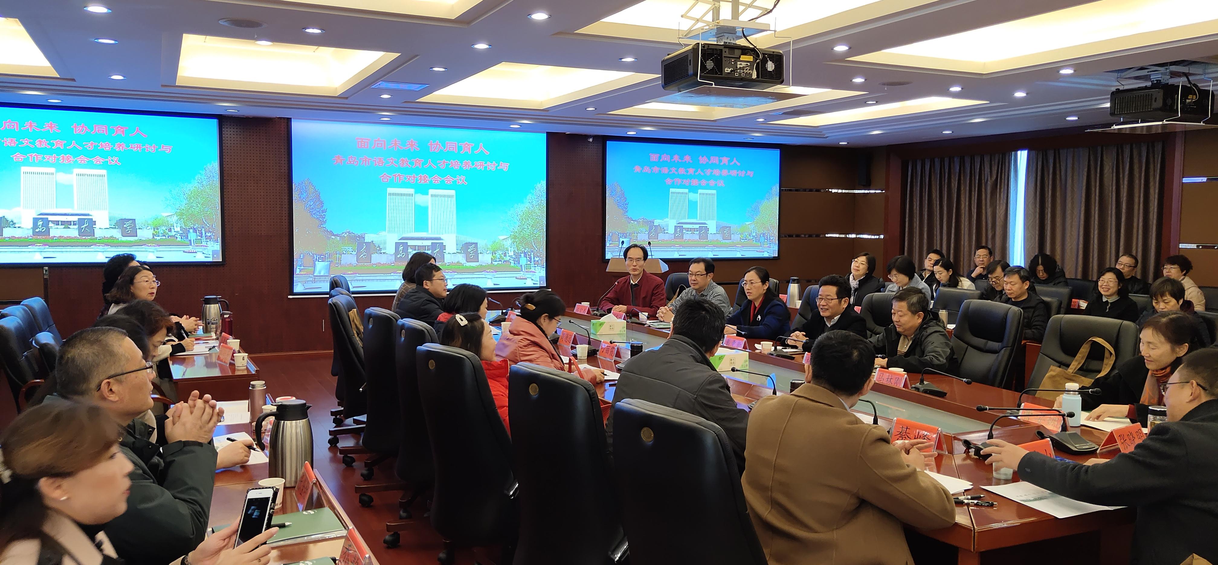 会议还就语文教育人才培养与合作对接问题安排了主题发言和专题讨论。与会嘉宾分别以“放眼大教育,携手共发展”、“加强与高校深度合作,培育高素质语文教师”、“借力高校资源优势,促进学校教学发展”、“开门办学、融合发展”、“优势互补、资源共享”、“深耕厚植,服务青岛”等为题发表讲话,内容丰富,交流热烈。大家不仅对青岛市语文教育教学、语文人才培养的热点、焦点问题进行了集中探讨,而且对建成互惠互利、合作共赢战略合作关系表示热切期待。