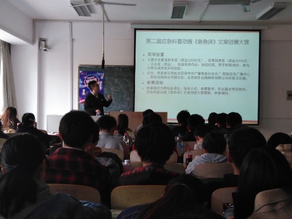 张弛秘书长以国际动画节为切入点,围绕央广国家应急广播中心的科普动画《急急侠》进行了创作分享、影片分享和文案创意赛事的分享,强调了立意、创意与画意在参加动画大赛中的重要意义,最后结合获奖学生动画短片提出了一些有针对性的参赛建议。许瑞宏经理对厦门国际动漫节“金海豚”奖的奖项设置、评选时间、报名流程等做了详细介绍,并以部分获奖作品为例,比较了学生动画与应用动画的差异。