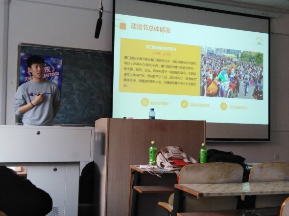 3月27日下午14:00点,应邱秉常院长邀请,国际动画协会中国分会副秘书长张弛、厦门国际动漫节金海豚奖项目经理许瑞弘,在博远楼307举办了有关动画赛事的分享会。