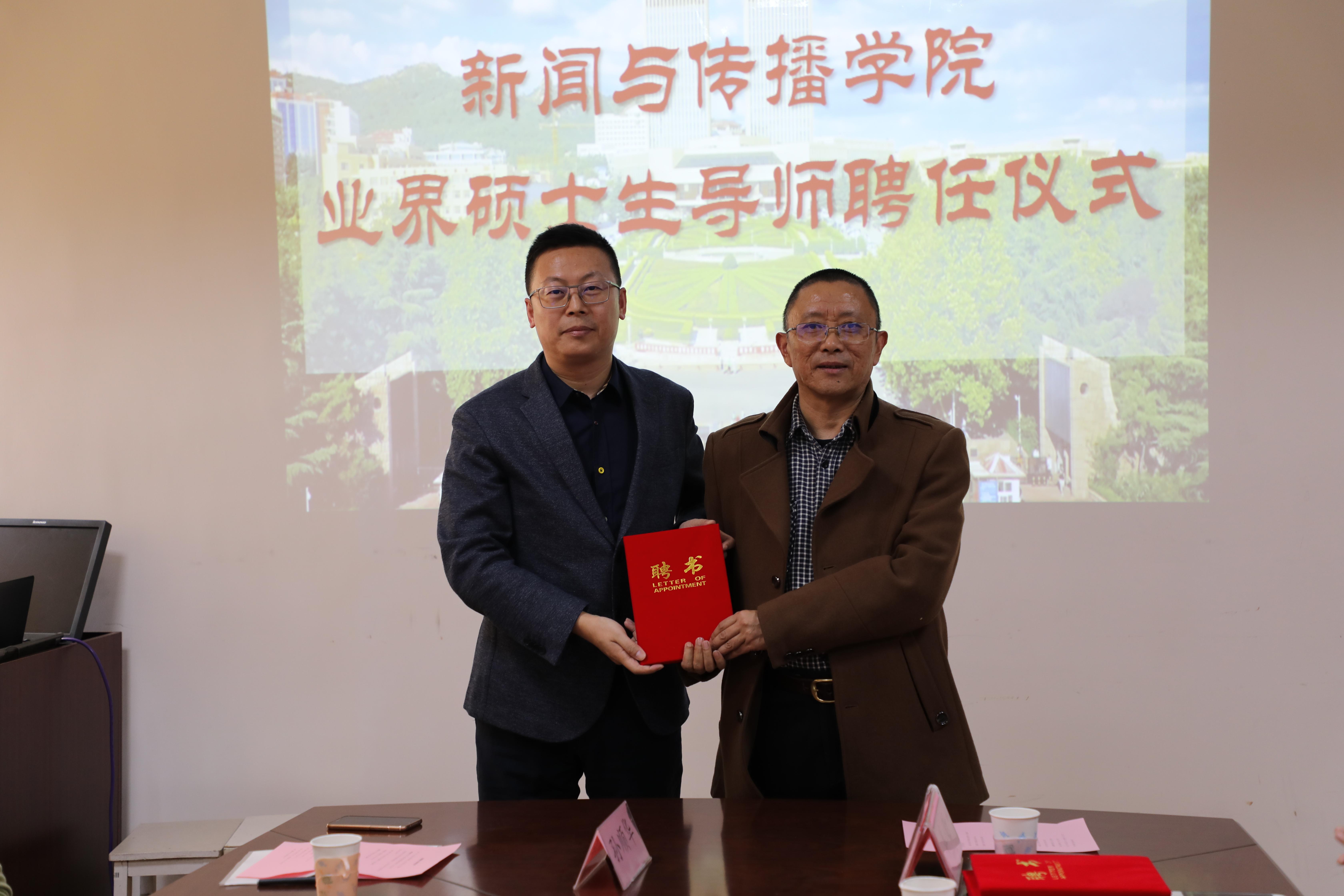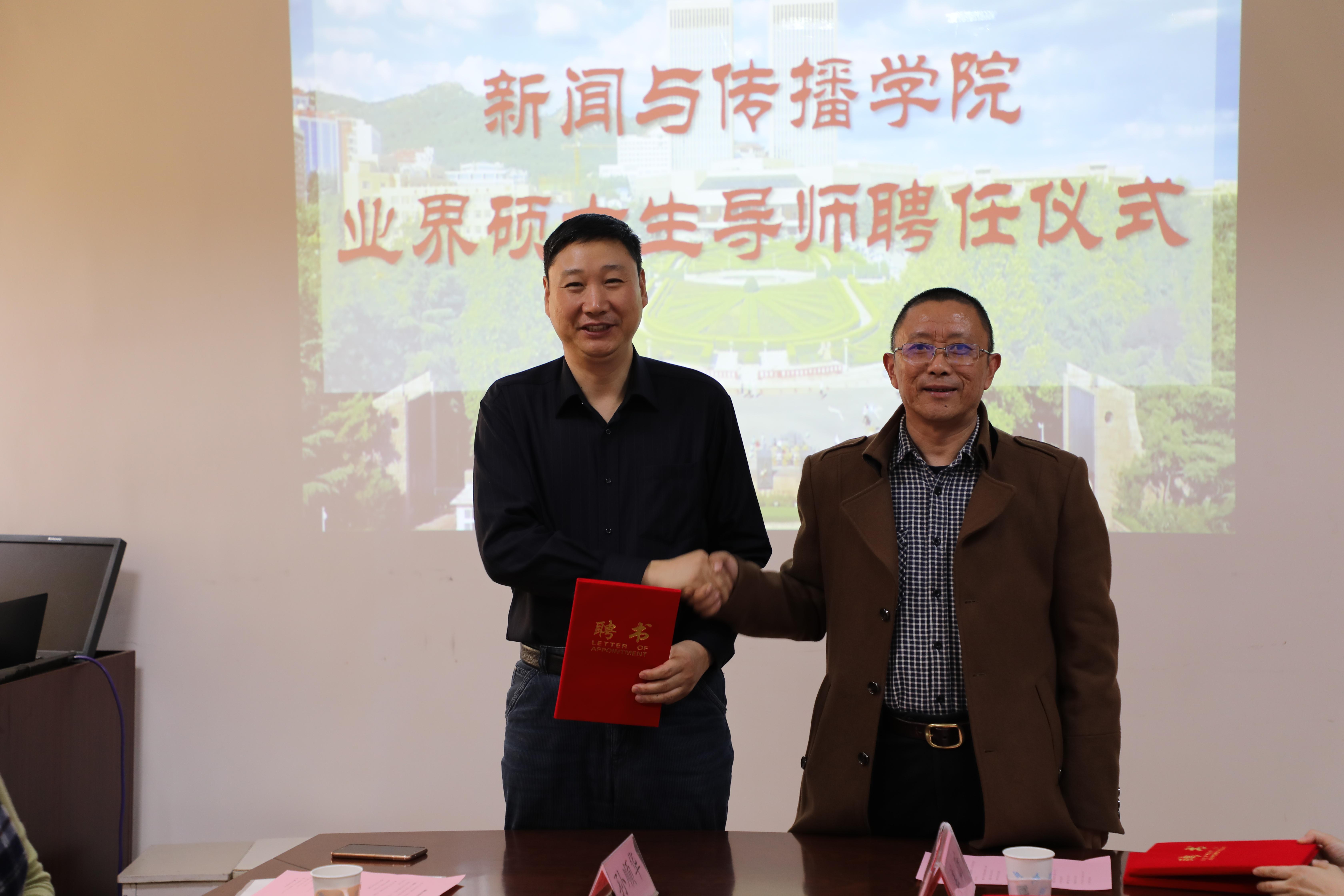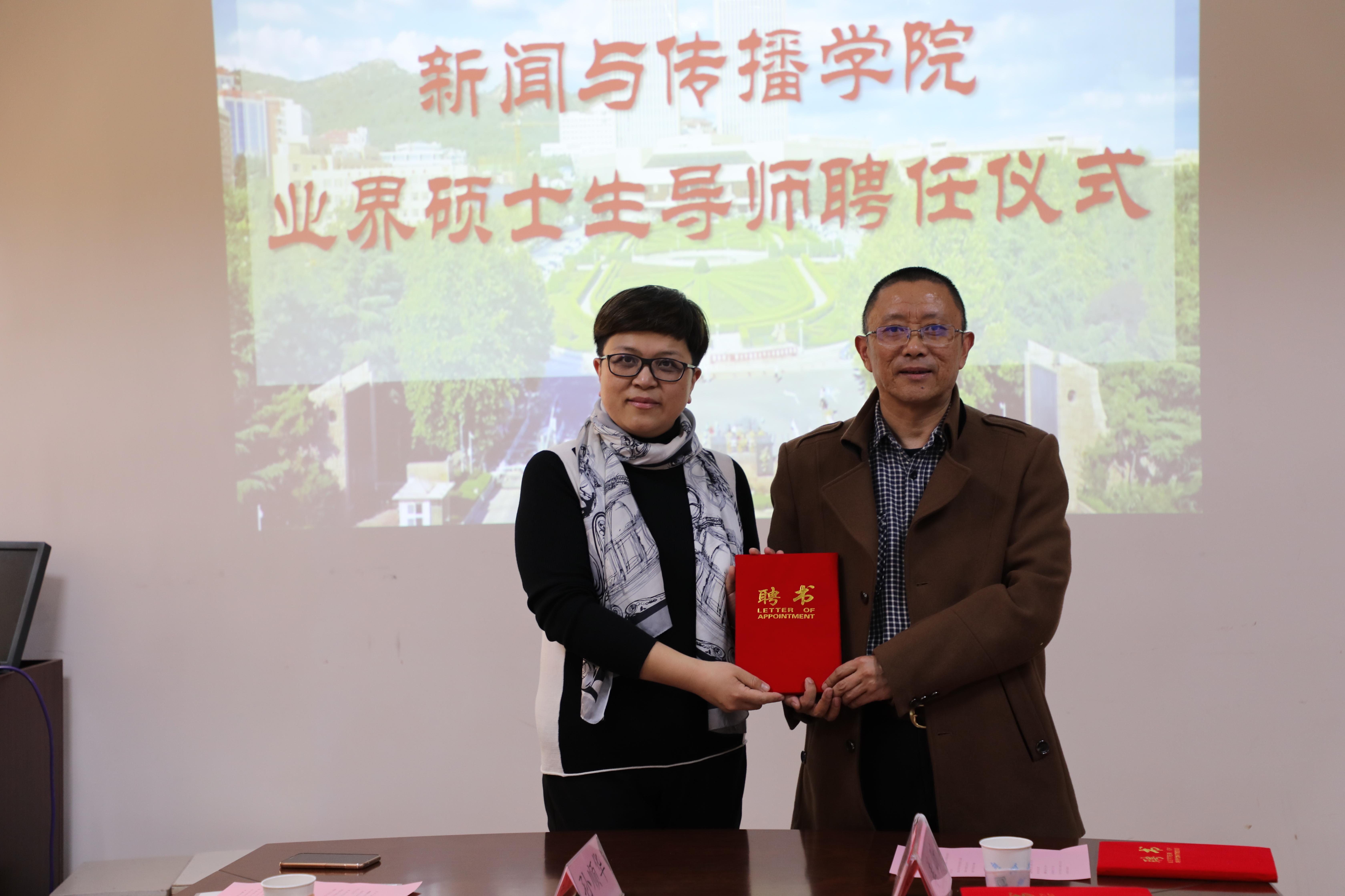 新闻系主任姜昕副教授、学院硕士生导师代表陈谦教授、孙顺华教授以及研究生教学秘书李璐也出席了聘任仪式。