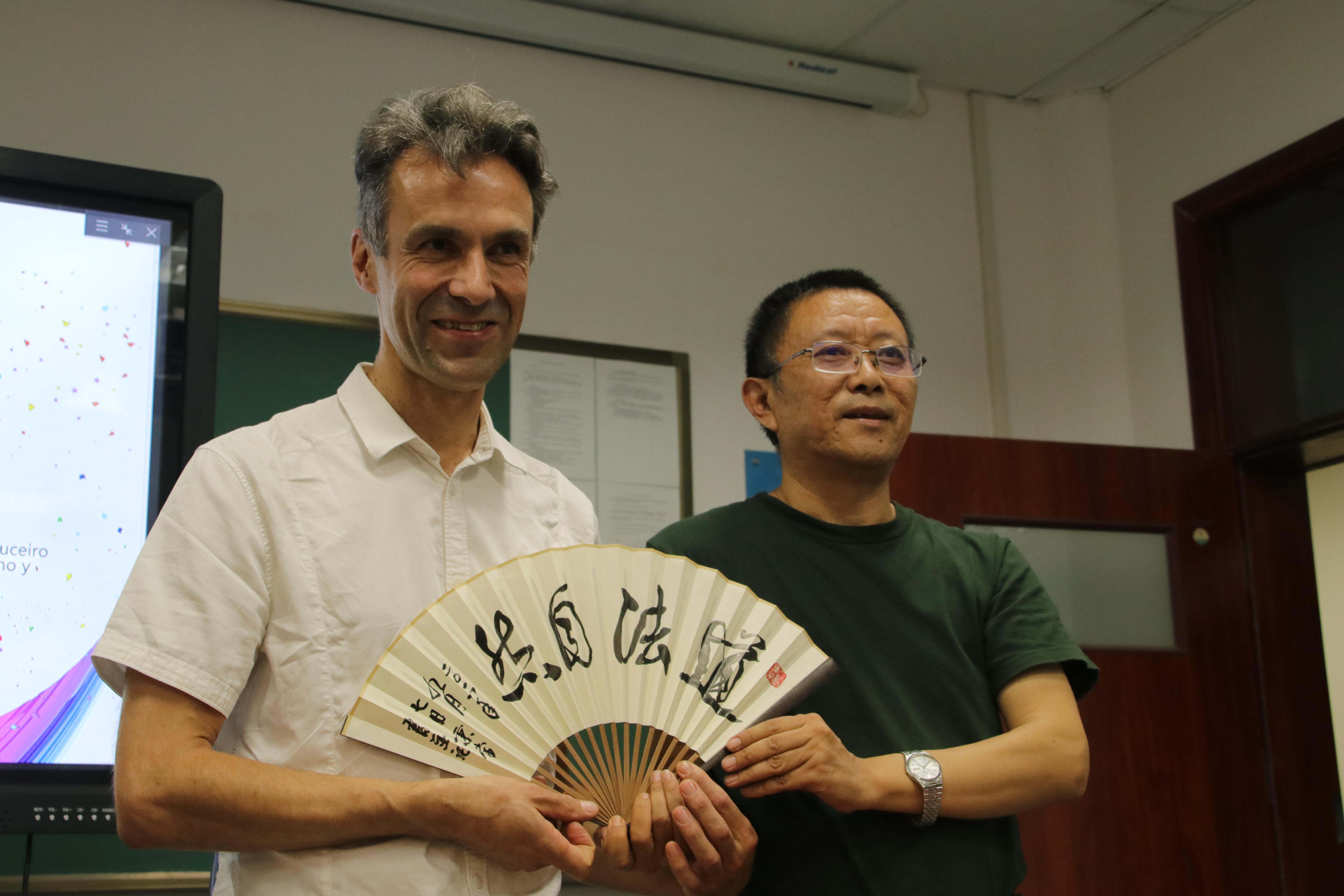 9月7日下午,本届定格动画工作坊举行了结课仪式,新闻与传播学院副院长邱秉常主持仪式,青岛电视台蓝海主任和动画教研室全体教师出席仪式。邱秉常首先代表学院向Alberto老师表示衷心的感谢,对本届动画工作坊的教学方式、取得的成效以及Alberto老师的严谨、敬业给予充分肯定。接着,大家一起观看了工作坊视频回顾和学生们的作品展映。邱秉常代表学院向Alberto老师赠送了礼物。2016级动画专业胡晨同学向Alberto老师和邓茜、颜朵两位承担翻译工作的外语学院西班牙语系大四学生,赠送了亲手为他们绘制的个人肖像。