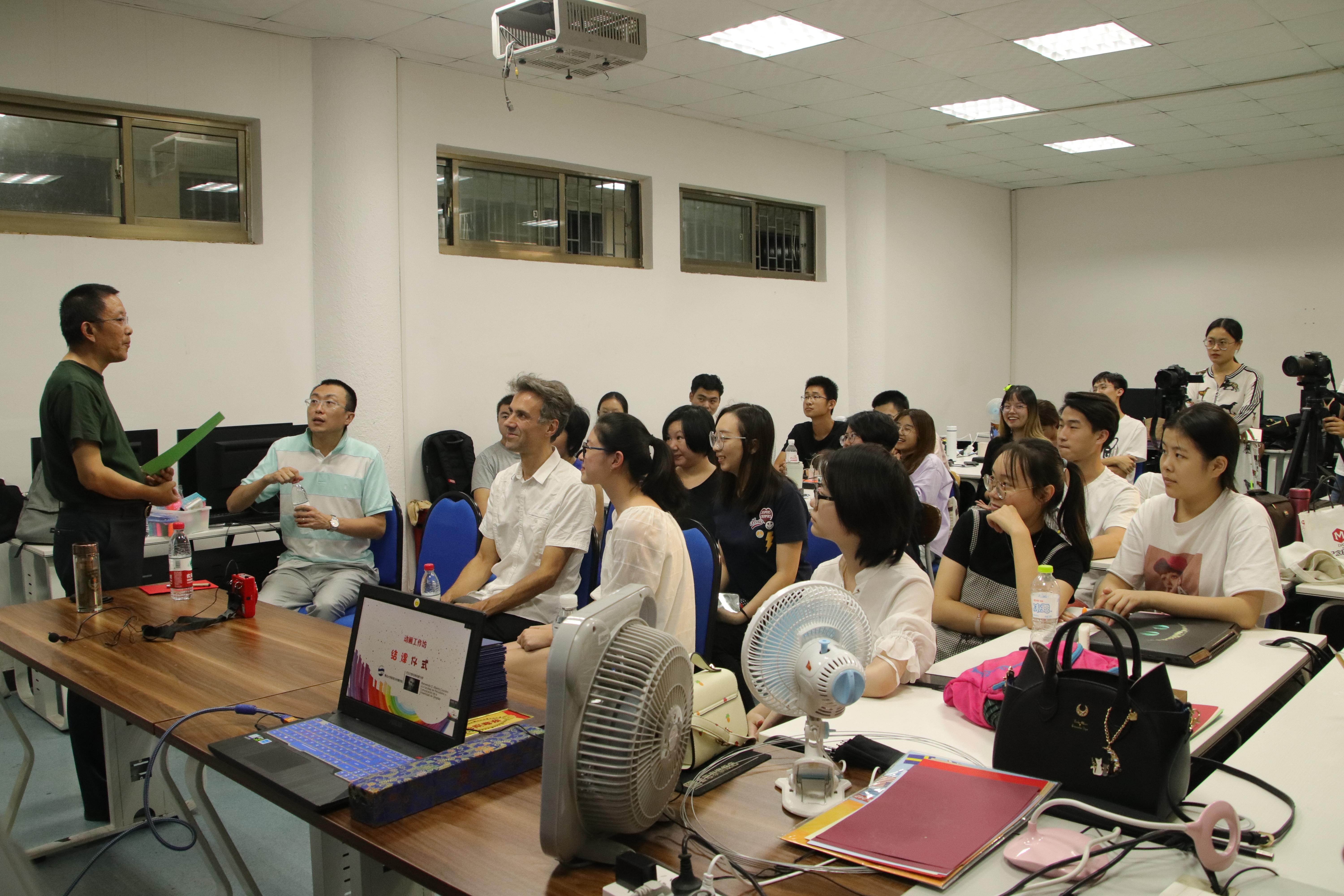 邱秉常副院长和Alberto老师一起为获得最佳创意奖、最佳合作奖、最佳制作奖、最佳剧情奖的四个小组颁奖,动画教研室的四名教师同学们颁发了结课证书,最后大家一起合影留念。