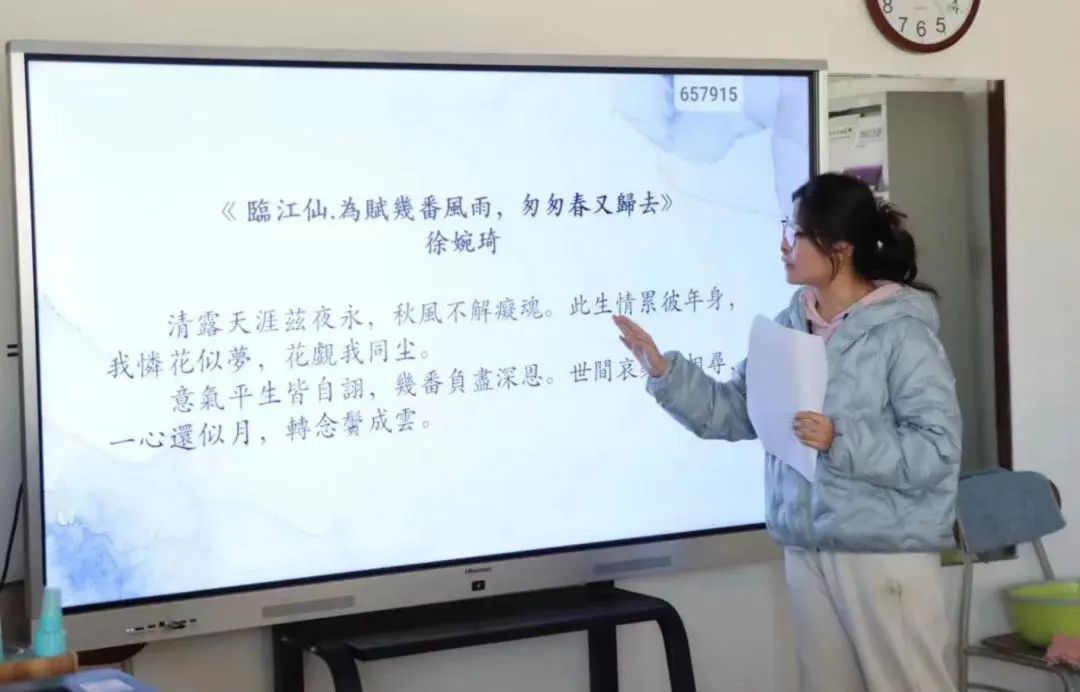 徐婉琦以《诗大序》为例,由古典诗词的美感特质、吟诵传统、创作与传承为引言,漫谈了古典诗词之美。“二流的诗人以诗为生命,而一流的诗人以生命为诗。”“你只需要一个黄昏,看梨花如何从身边飘落。”她分享了自己写的词并强调学习古典诗词不仅是对中国传统文化的传承,更是让我们在这个物欲横流的世界中,始终保持澄澈活泼生动的心灵的关键。在讲解中她重点分享了古典诗词的吟诵传统,她提到“中国古典诗歌的生命是伴随吟诵的传统成长起来的。”吟诵有调无谱,依字行腔,字正腔圆,要注重咬字的力度深度以及发音。