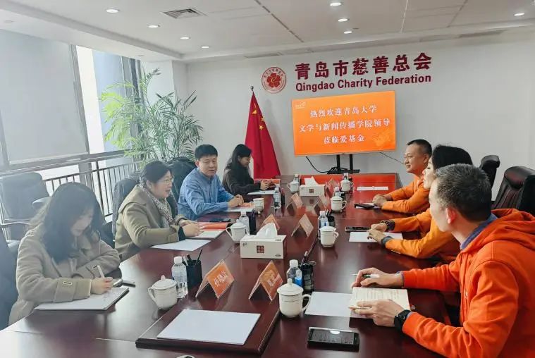 党委书记张辉、党委副书记戚昕、副院长张文彦以及团委负责人孙晓萱一行赴青岛市慈善总会爱基金进行座谈交流。青岛市慈善总会爱基金副会长夏霞、副会长林风谦、专职秘书长刘庆、专职秘书王馨参加座谈会。