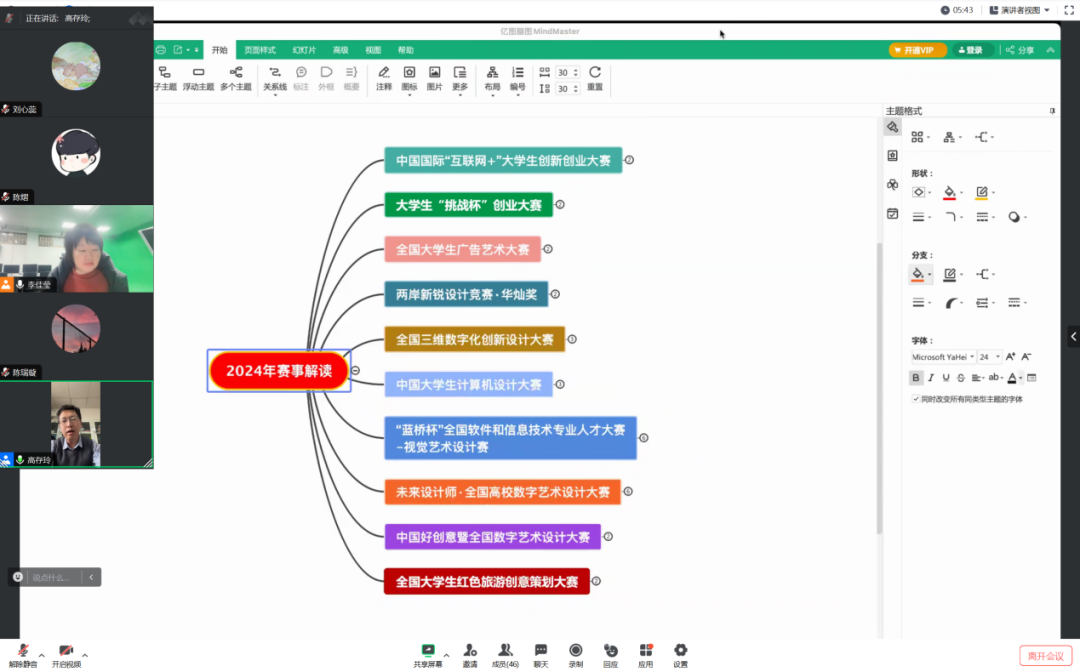 通过腾讯会议召开2024年大学生艺术类竞赛赛事解读会议。文传学院何蝌副教授担任本次会议的主讲人,院长助理高存玲副教授主持会议,文传学院部分学生与会。