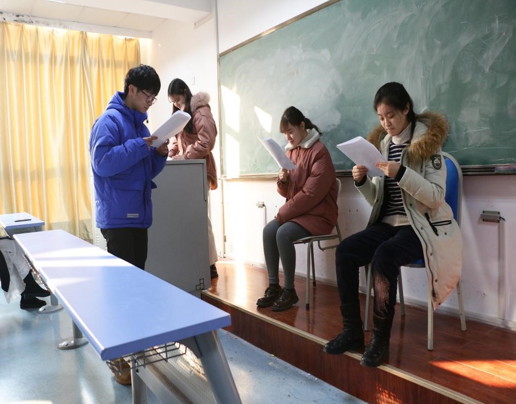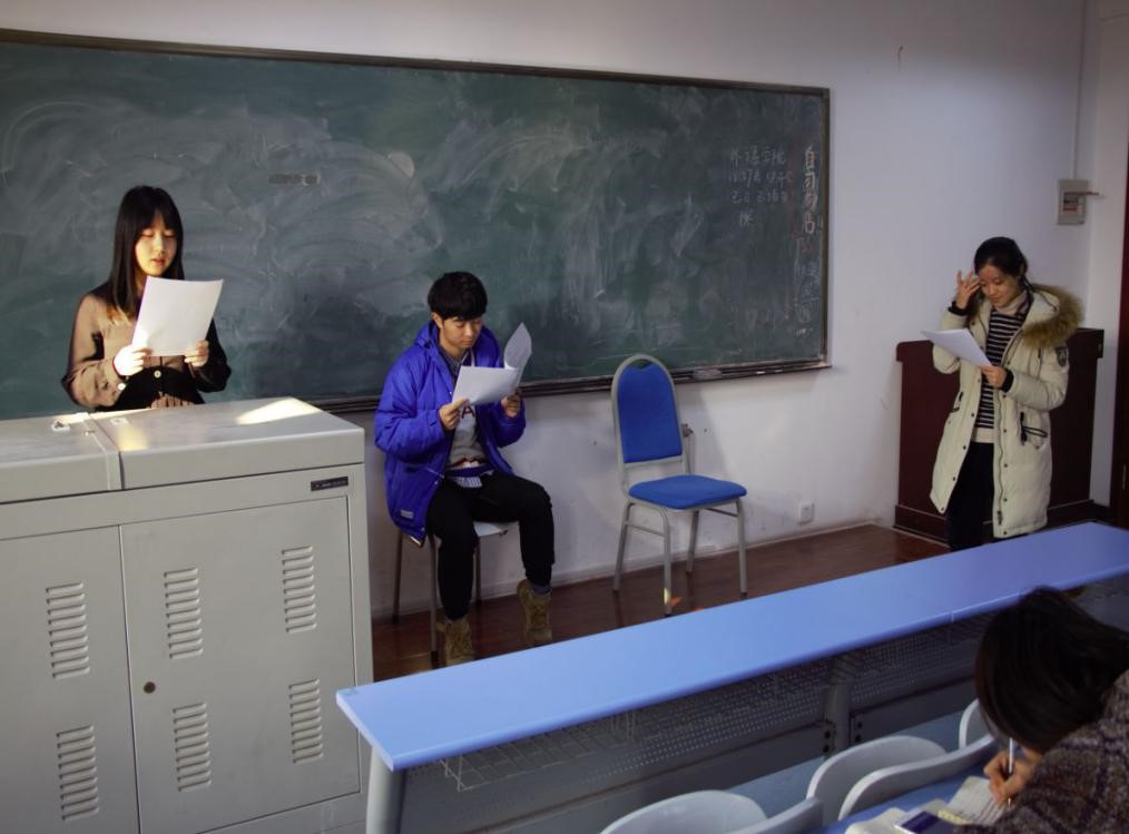 2019年1月3日,新闻与传播学院17级编导专业课“剧本写作”期末结课课程——原创剧本朗读会在博文楼303教室举办。本次剧本朗读会由于相坤老师主持,编导专业全体学生参与。