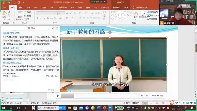 本阶段的关键教学素材是为解决线上学习存在的低投入浅学习的问题邀请一线教师录制的真实教学问题视频。这些视频既包括骨干教师的教学经验介绍,也包括刚刚入职的语文教师的困惑。通过视频案例的呈现,一是还原专业学习的真实状态,让研究生产生真实语文教学的共情感;二是通过对真实案例中语文教学问题的讨论,培养严谨科学的探索精神,唤醒研究生语文教育的使命感。
