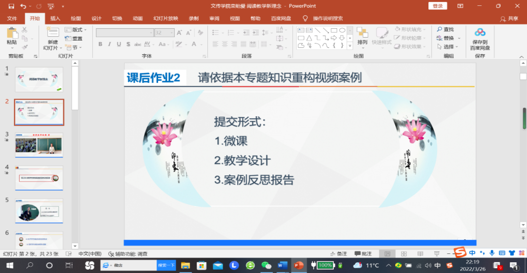 这个阶段是在课堂学习基础上,要求研究生独立优化课始的问题案例,完善问题案例。优化后的案例设计,作为生成性成果,可以有多种呈现方式,比如课件、微课、小论文等。同时鼓励学生继续拓展阅读课上推荐的相关文献,提升理论思维水平。