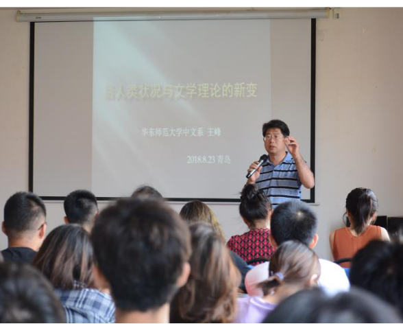 8月23日上午10:00-12:00,文学院夏季学期高端学术讲座第1讲在浮山校区博文楼会议室举行。来自华东师范大学中文系的王峰教授,做了题为《后人类状况与文学理论的新变》的精彩演讲,文学院100余名师生参加了听讲。