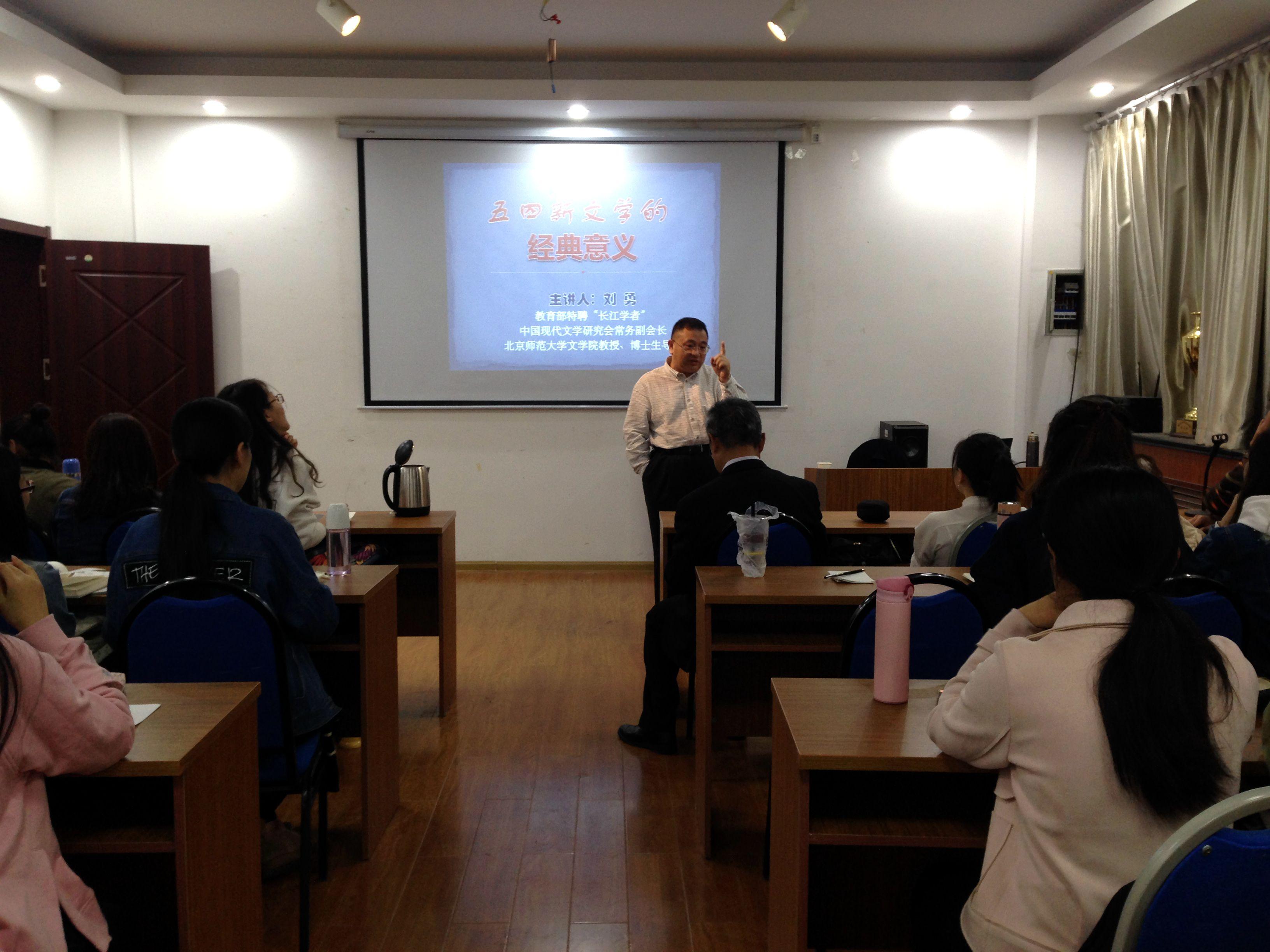 4月28日晚,北京师范大学文学院教授、教育部长江学者、中国现代文学研究会常务副会长、《中国现代文学研究丛刊》副主编刘勇做客文学院,在博文楼521室为文学院师生作了以“五四新文学的经典意义”为主题的学术讲座。