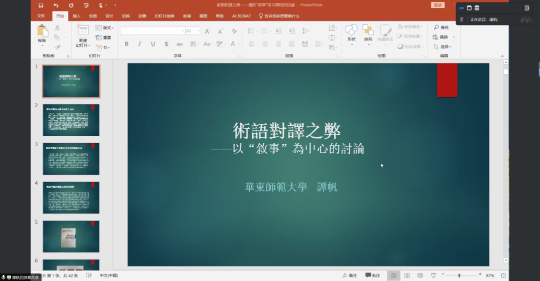 邀请华东师范大学终身教授谭帆教授于线上做了题为《术语对译之弊——以“叙事”为核心的考察》的学术报告。工口实验室