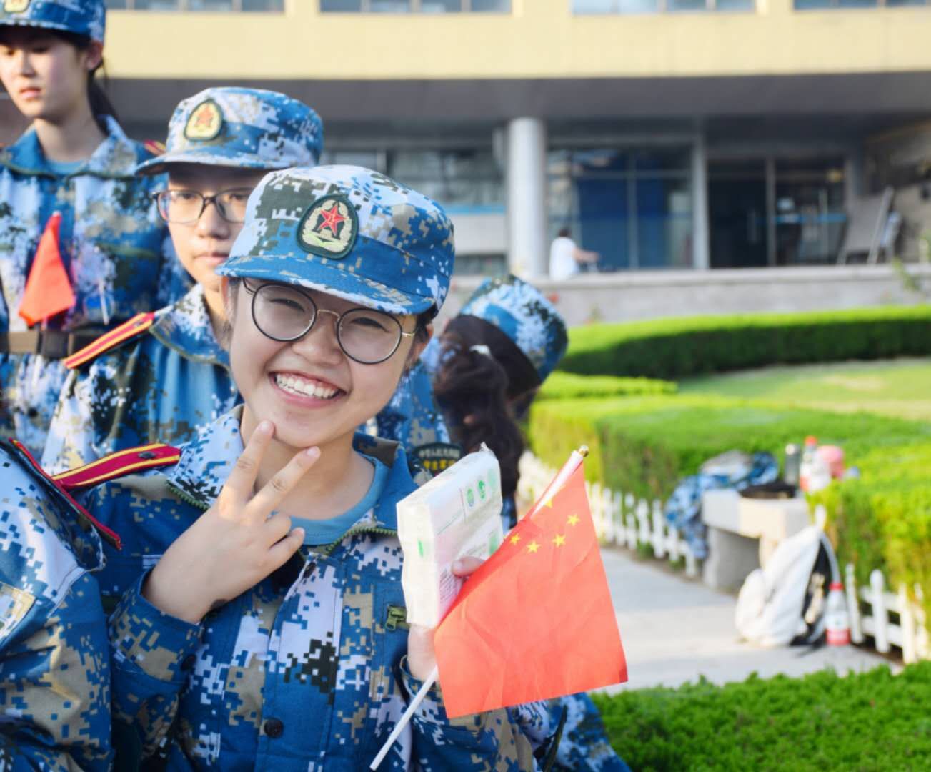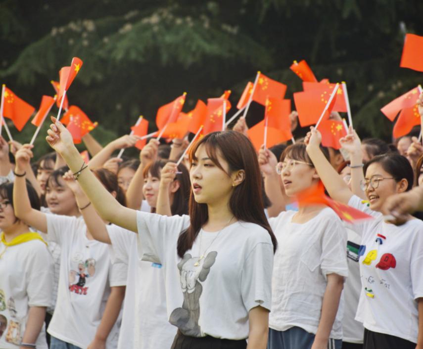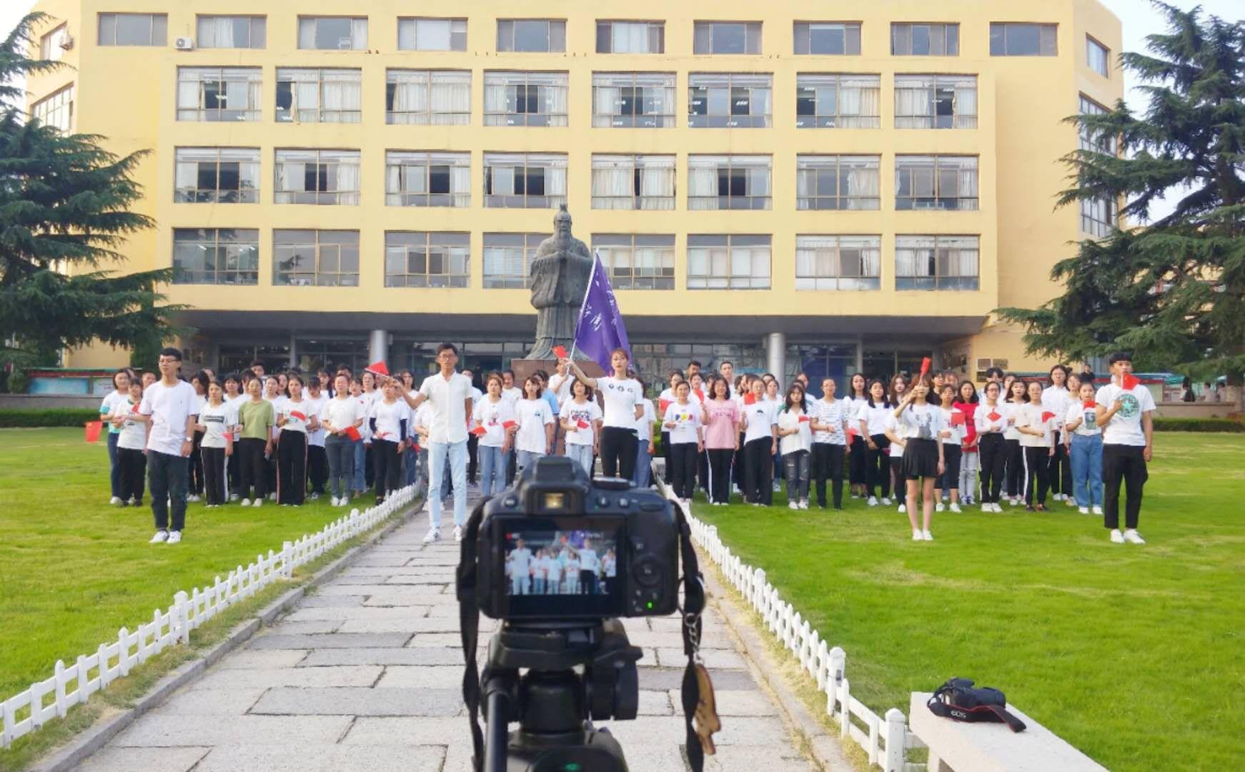 新闻与传播学院在新生报道当天组织了2019级全体新生在博文楼前草坪开展了《我爱你中国》合唱活动,并拍摄《我爱你中国》主题MV。