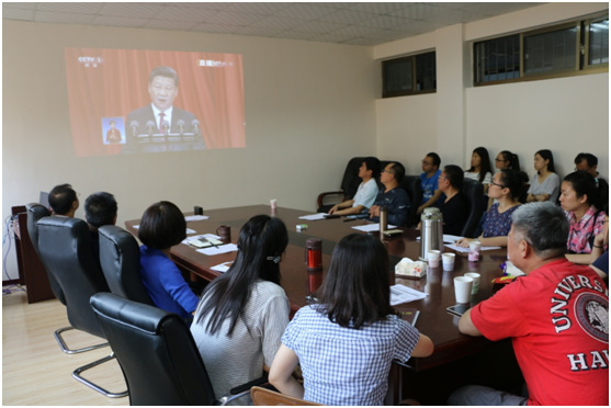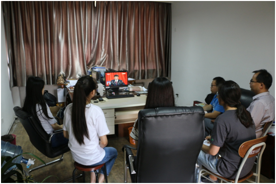 在认真收看了大会实况后,大家备受鼓舞,纷纷表示,将紧密团结在以习近平同志为核心的党中央周围,坚决贯彻落实习近平总书记系列重要讲话精神,充分发挥好党组织的战斗堡垒作用和党员的先锋模范作用,坚持不忘初心,继续前进,进一步坚定理想信念,牢记党的宗旨,增强使命感和责任感,在各自岗位上开拓进取,争取更大的成绩。