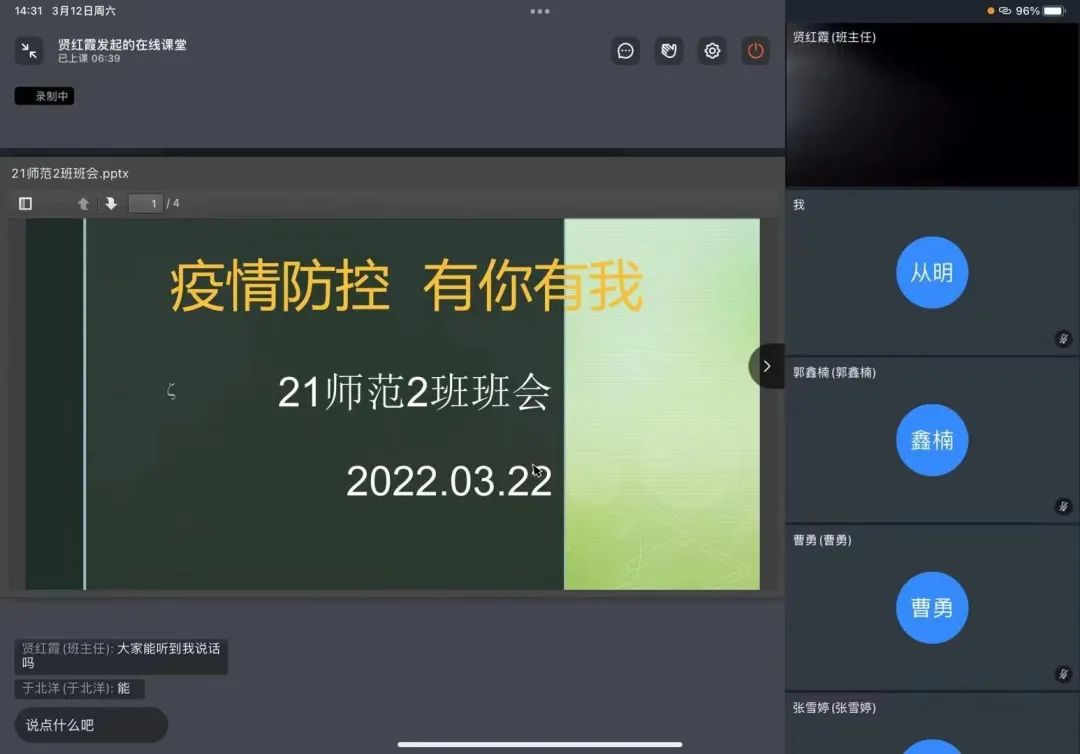 会上,班主任老师引导学生学会理性看待疫情,保持良好心态;坚持健康作息规律,按时进行线上学习;指导学生正确了解疫情的动态,远离谣言,相信科学;提醒学生务必要时刻佩戴口罩,根据学校的要求定时定点、分批次地进行核酸检测。