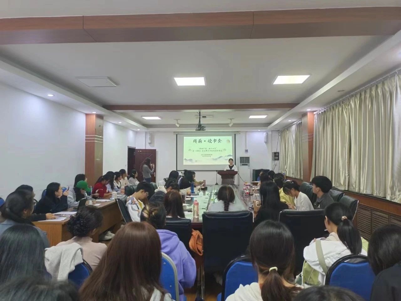 于博文楼521会议室召开以“跨越千里,动人心扉——品味《诗经》千年的浪漫与情话”为主题的传薪·读书会第五期,本期读书会由古代文学史焦绪霞老师主讲,本科生王亚蕾主持。