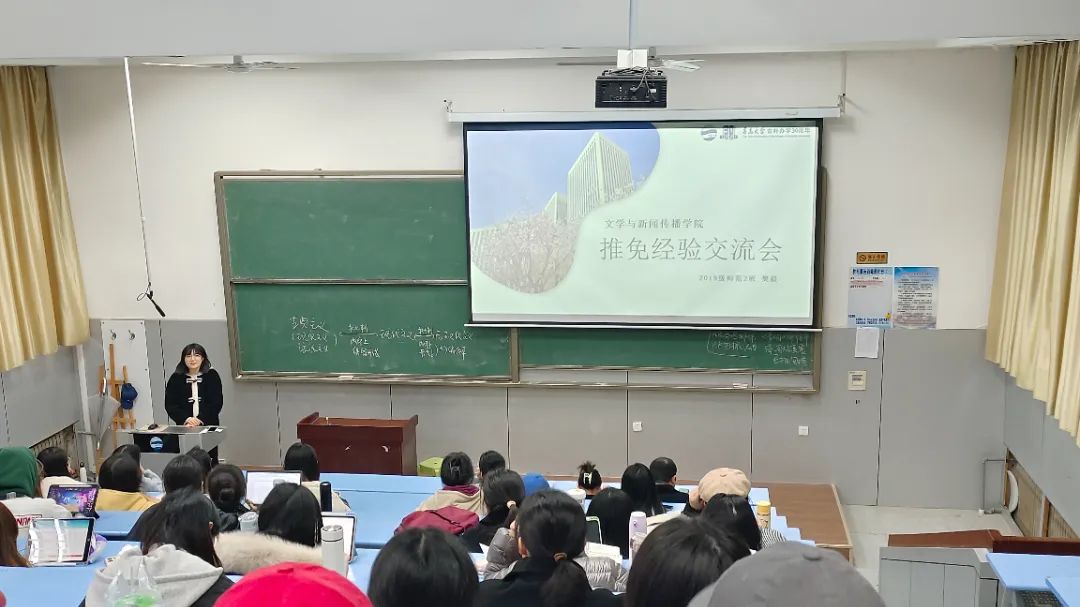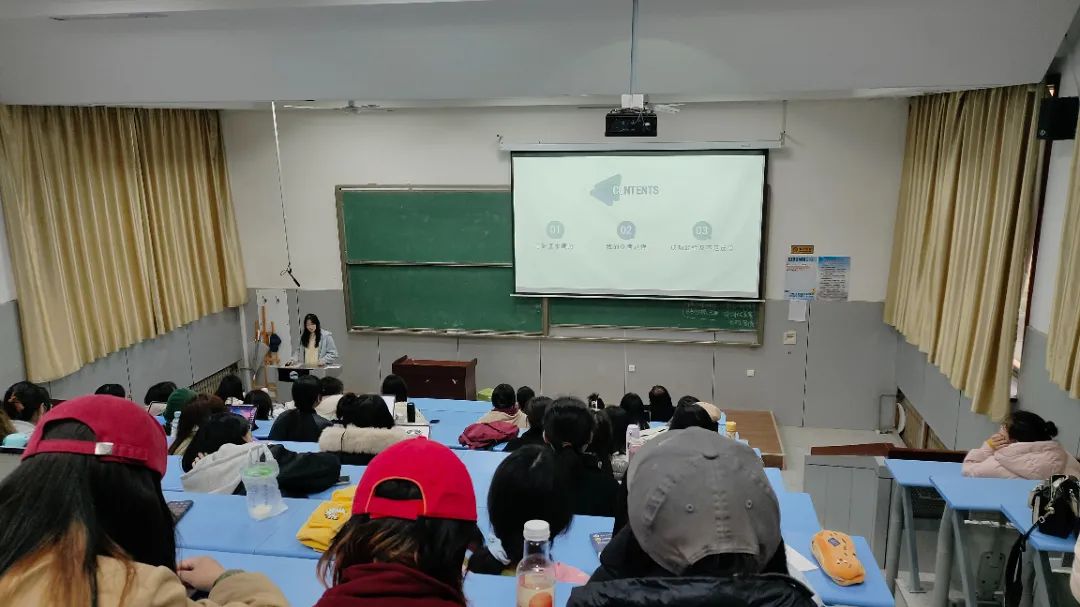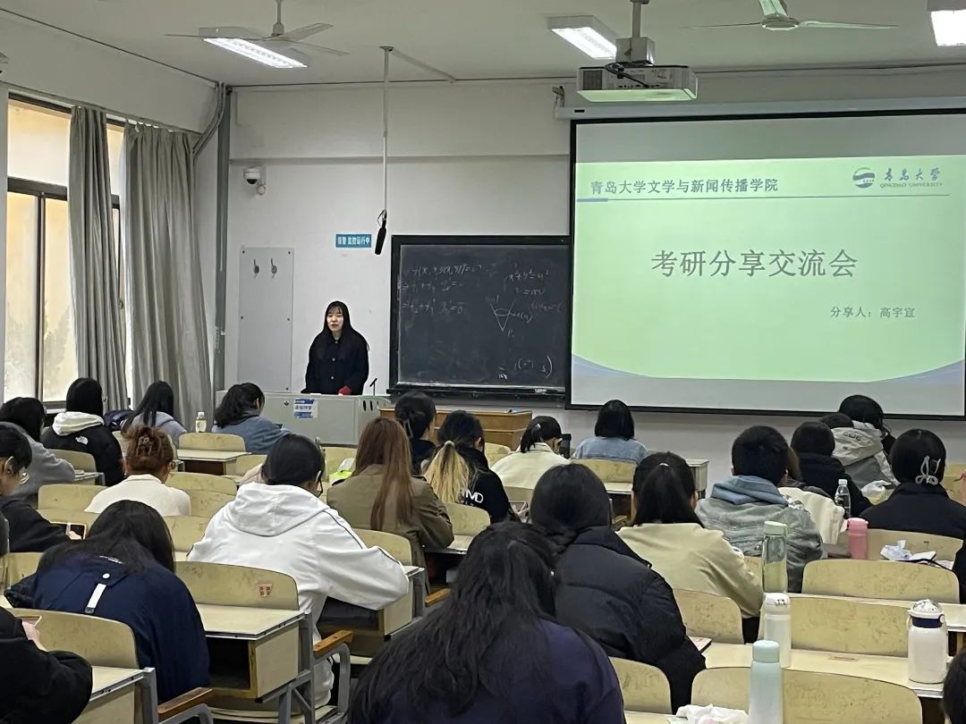 彭卓和高宇宣此次是作为“二战上岸”的学姐来与同学们进行分享交流。在分享中,彭卓从择校、备考经验、备考流程以及要不要考研四个方面为同学们进行了分享,强调了择校、英语学习以及刷题的重要性。高宇宣在分享会中也向同学们分享了自己一战失利后调整心态、重振旗鼓,最终成功上岸的经历。