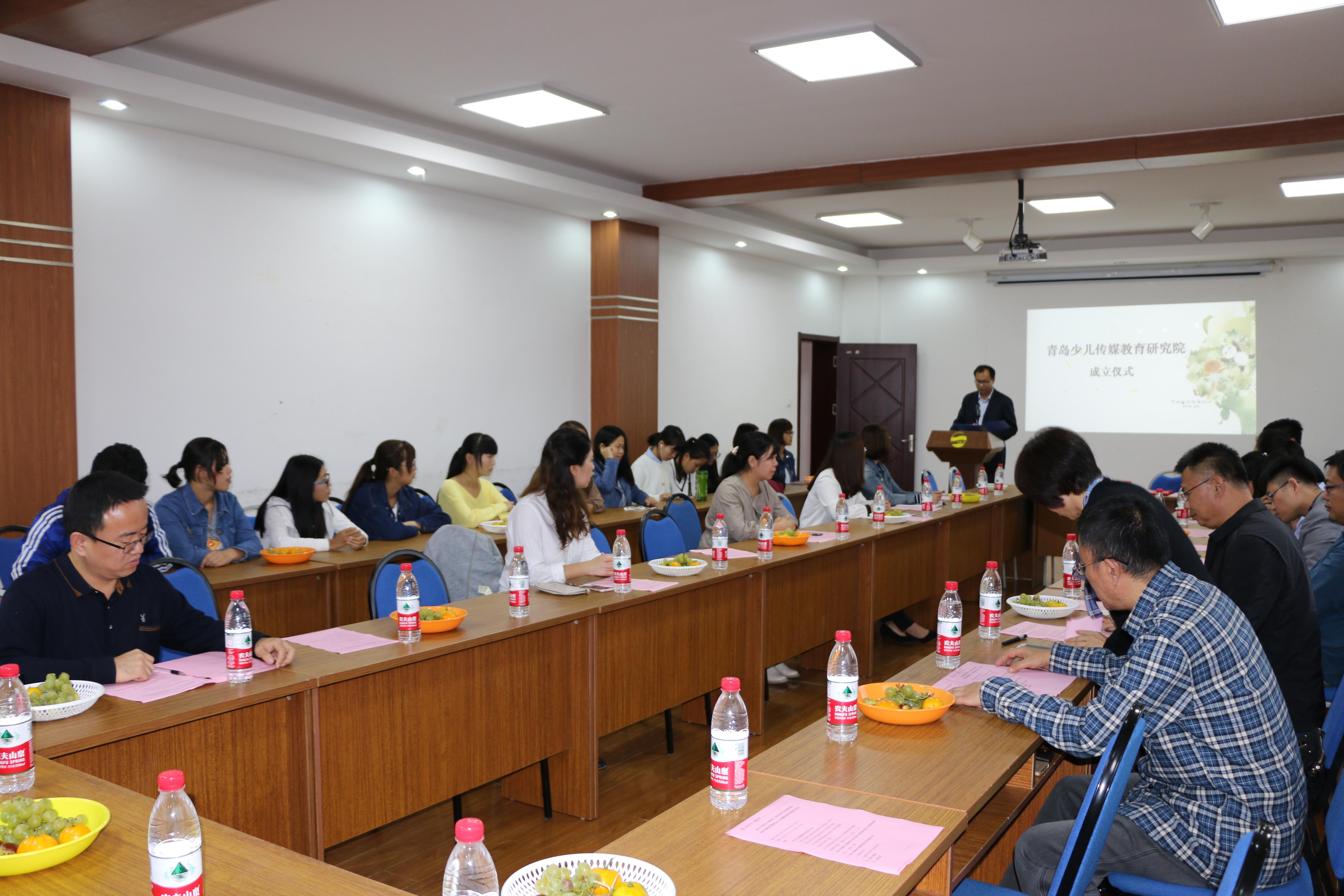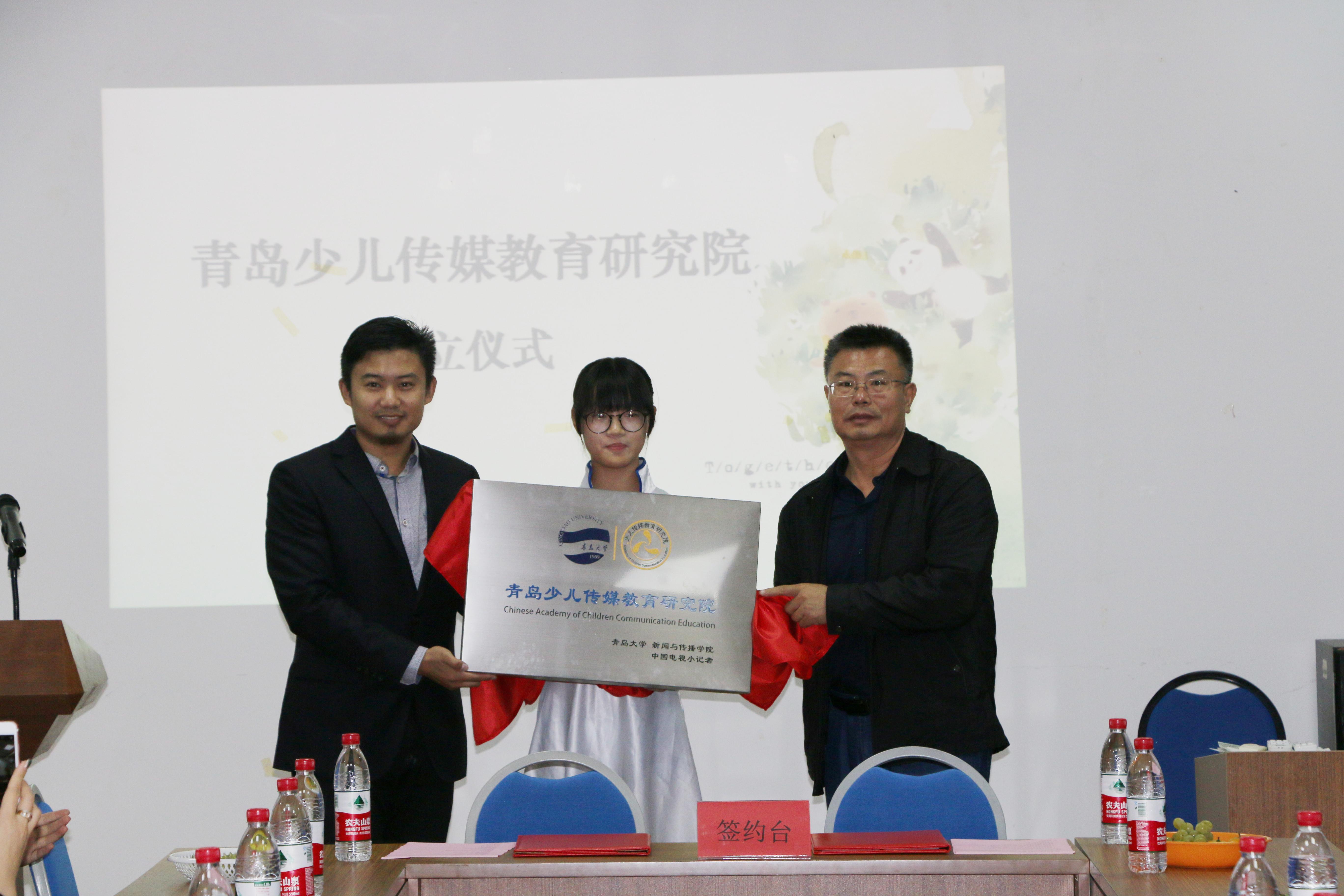 副院长、青岛少儿传媒教育研究中心主任邱秉常介绍了研究中心的成立背景、筹备过程、研究重点和近期工作计划。青岛电视小记者学校校长贾昀介绍了当今少儿传媒以及少儿传媒教育的发展状况及青岛电视小记者进修学校的概况。中国文化创意产业网总编马达作为嘉宾代表发言,表示将积极支持、助力研究中心的发展,拓展合作渠道,为大学生、小学生搭建优质的实践平台。