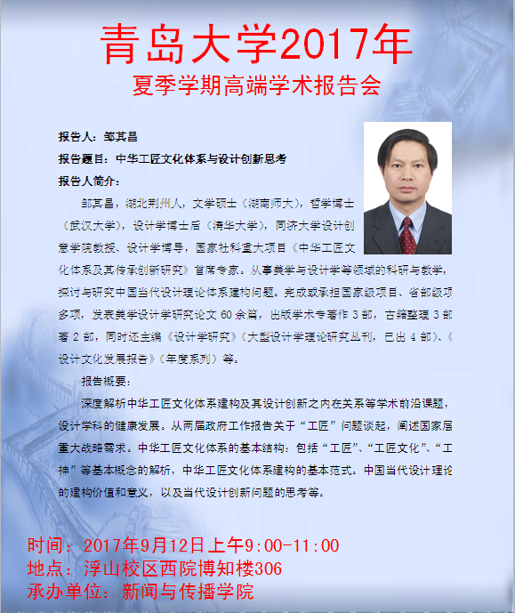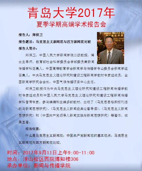 新闻与传播学院夏季学期高端学术报告会本周预告