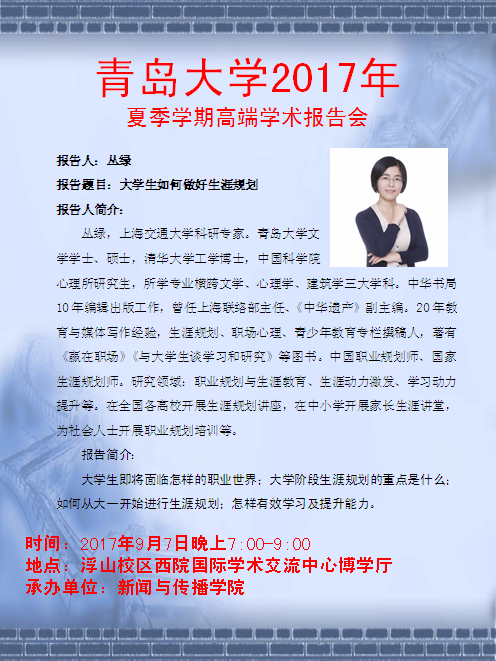 新闻与传播学院夏季学期高端学术报告会一周预告