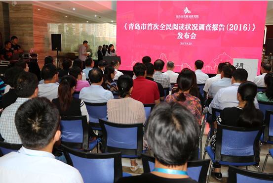 9月22日,青岛全民阅读研究院(青岛全民阅读智库)举行秋季发布会,首次发布了青岛市全民阅读状况调查报告。报告显示,2016年青岛市成年居民的图书阅读率为62.7%,较全国高3.9个百分点;数字化阅读方式的接触率为80.7%,较全国高12.5个百分点;各媒介综合阅读率为89.0%,较全国高9.1个百分点;青岛市成年居民人均纸质图书阅读量和电子书阅读量分别为4.45本和2.73本,均略低于全国水平(4.65本和3.21本)。