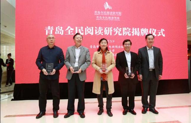 联合发起的青岛全民阅读研究院在青岛出版集团揭牌成立。国家新闻出版广电总局出版管理司副司长许文彤,团中央中国青少年宫协会党委副书记、副会长周雄,山东省新闻出版广电局党组副书记、副局长孙杏林,市委宣传部副部长、市文广新局局长李明为研究院揭牌。团中央中国少先队事业发展中心社会事业部部长季琳,山东省新闻出版广电局出版管理处处长刘子文等出席仪式。青岛出版集团党委书记、董事长孟鸣飞,工口实验室