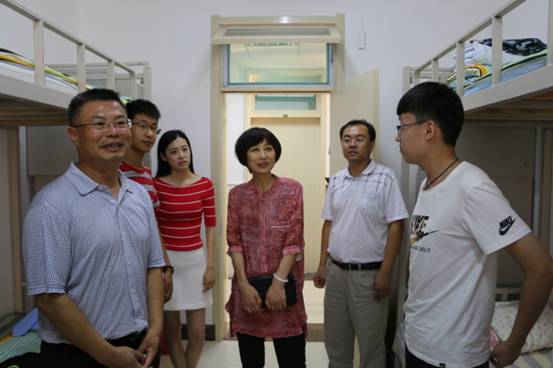 9月9日下午,新闻与传播学院党委书记张银亭、院长赵秀凤一起走进2016级新生的宿舍,与新生同学进行亲切交谈。