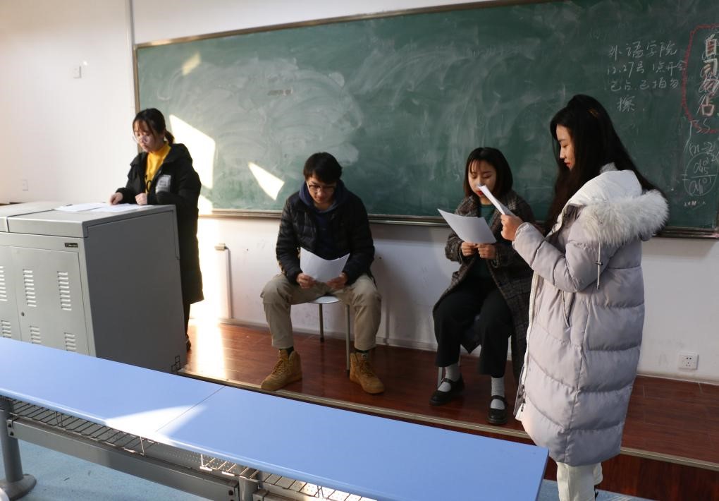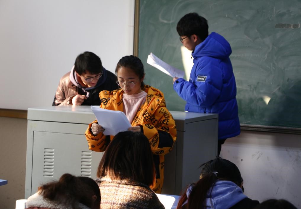 2019年1月3日,新闻与传播学院17级编导专业课“剧本写作”期末结课课程——原创剧本朗读会在博文楼303教室举办。本次剧本朗读会由于相坤老师主持,编导专业全体学生参与。