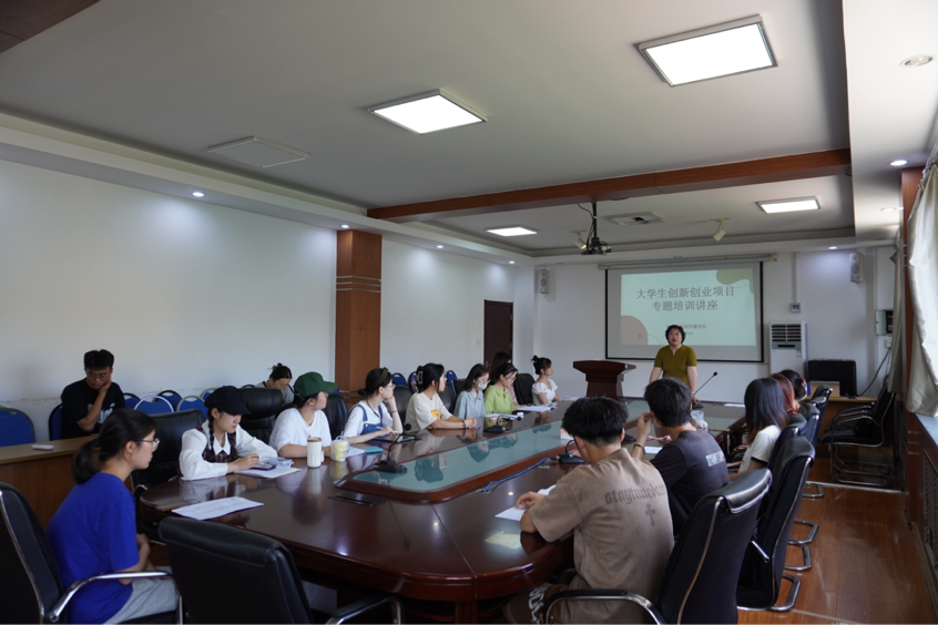 党委副书记戚昕在博文楼521会议室举办创新创业项目专题培训,学院各专业大创立项学生参加会议。