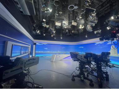 在这里工作人员细致、热情的为我们讲解电视台工作流程,并带我们参观部分工作实景。在六楼高清演播室,是《新闻在线》栏目主要拍摄、制作场地,在实地机房里我们被庞大复杂的专业摄像机、错落有致的灯光布置所震撼,近距离感受到专业摄像机的魅力所在。随后我们来到位于10楼的工口实验室演播室,映入眼帘的是一块收集、显示各方数据的大屏幕,实时播放各账号数据,以利于及时监测。在这里我们学习到新闻制作的流程,一个新闻需要经历选题、采访、编辑写稿、成片、三级审核、录制播出等一系列流程才能最终呈现在观众面前。13楼是全媒体广播中心,主要运营《青岛综合广播》、《青岛经济广播》、《青岛文艺广播》、《青岛交通广播》、《青岛广电银色年华》、《海米FM》等,我们现场观看了导播老师的工作,在旁边是正在录制的新闻节目,与直播间相邻,导播能直接观察直播间的一举一动。通过电子传话器与主持人进行沟通和联系。