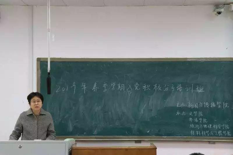 博知楼104教室正式开班。新闻与传播学院党委书记张银亭、党委组织部组织员蔡虹老师,学工办主任马丰刚、文学院李晨曦老师,外语学院王扬老师,旅游与地理科学学院杨秀老师,材料科学与工程学院郝晓丽老师,以及五个学院的入党积极分子参加了培训班的开班仪式。