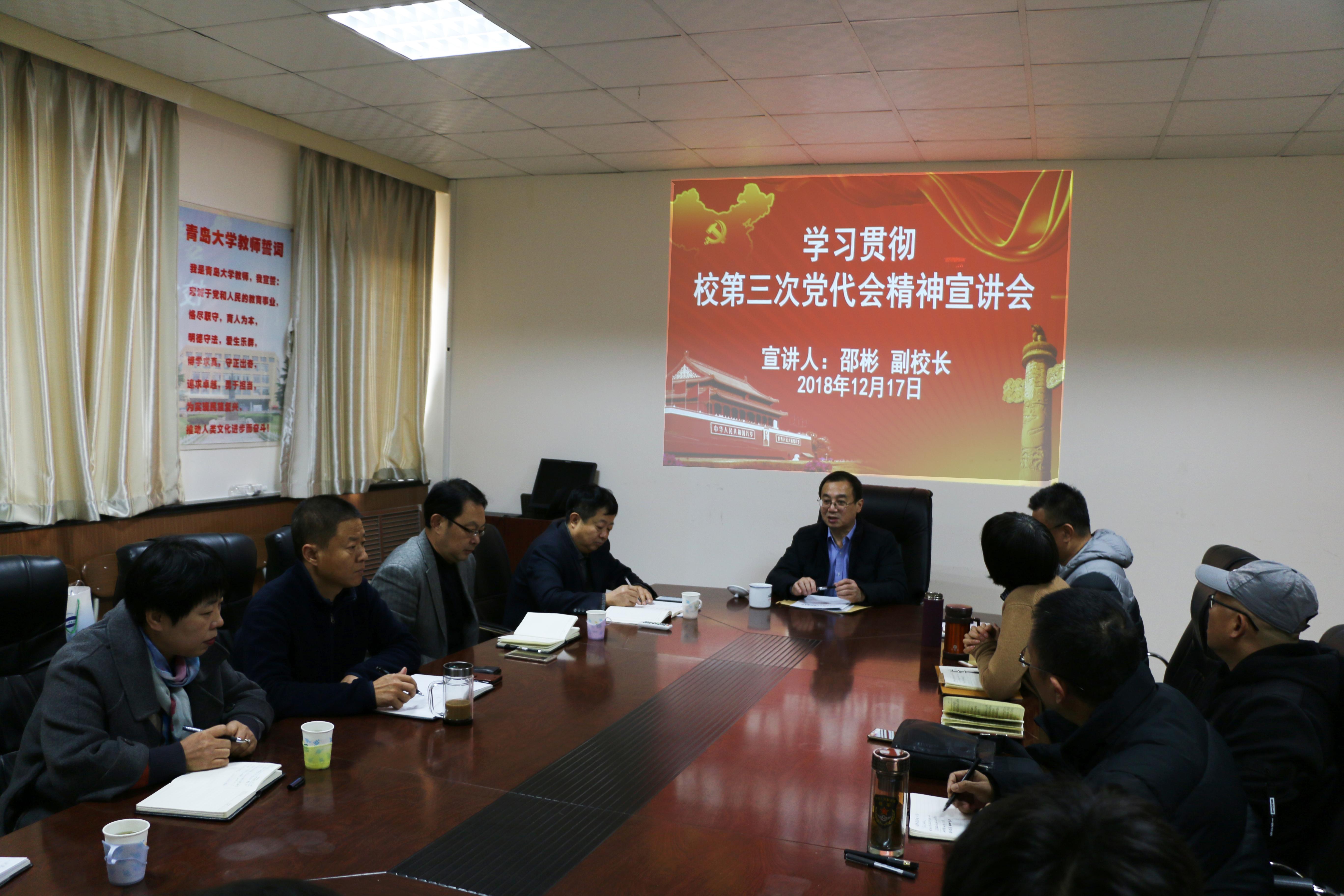 第三次代表大会精神。宣讲座谈会在博文楼412会议室举行,文学院与新闻与传播学院领导班子成员以及党员代表参加会议。