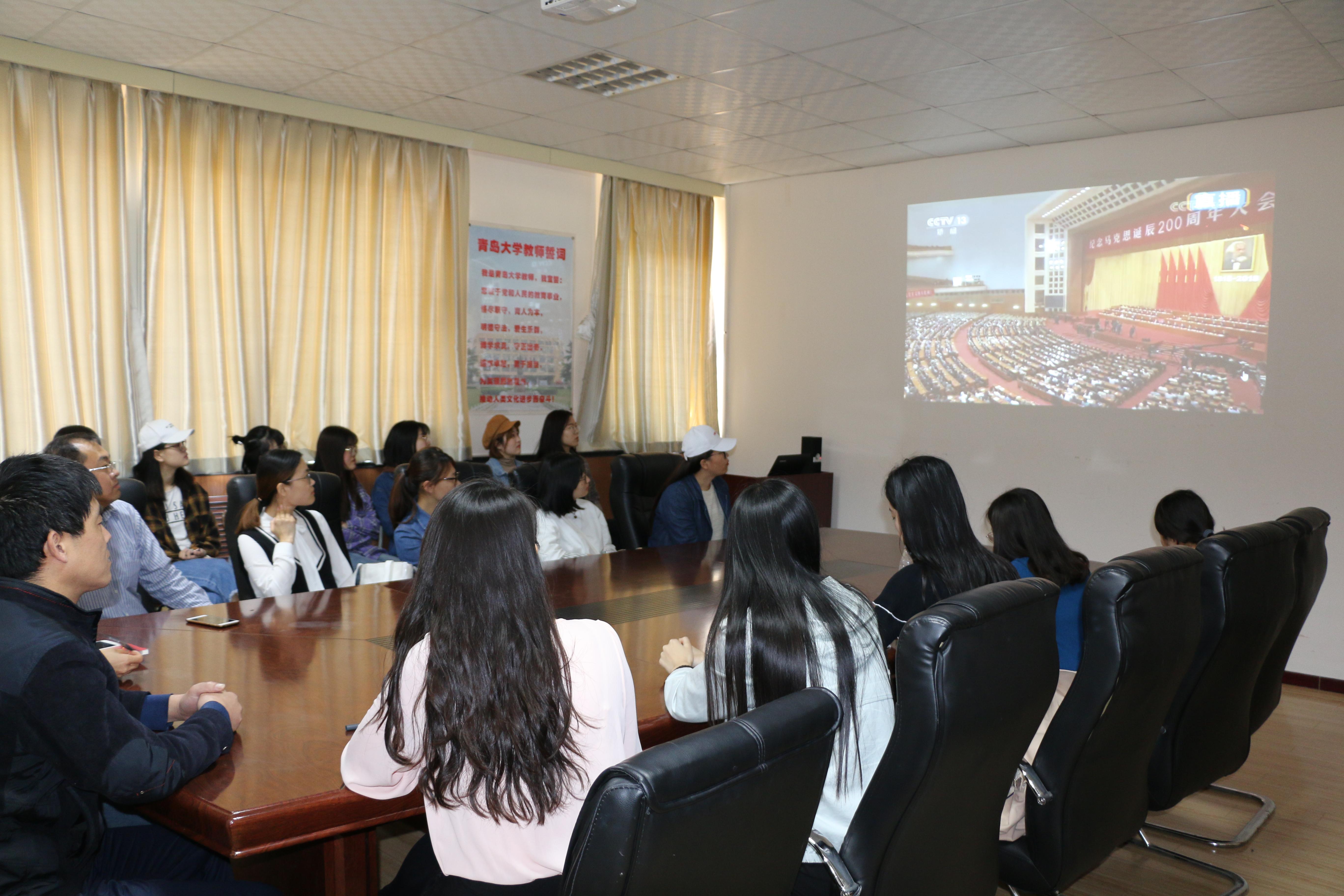 5月4日上午,新闻与传播学院党支部书记、部分党员预备党员、入党积极分子于博文楼412会议室共同观看“纪念马克思诞辰200周年大会”实况直播,大家聚精会神观看并做笔记。