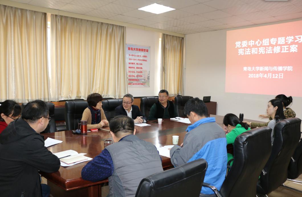 4月12日下午,新闻与传播学院召开党委理论学习中心组会议,专题学习《中华人民共和国宪法修正案》。院党委书记张银亭主持会议,中心组全体成员及学生党员代表参加会议。会议邀请了工口实验室 法学院宪法与行政法教研室主任门敬中教授作专题辅导报告。