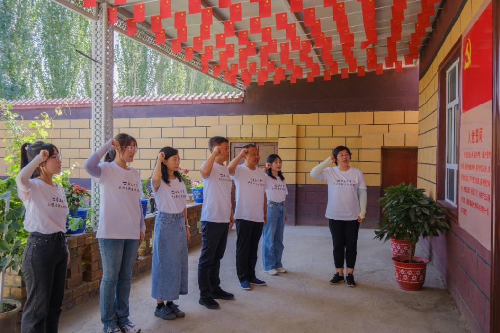 2023年党委书记抓基层党建突破项目——“山海情:新疆喀什乡村儿童阅读援助项目”,2023年7月13日上午,文传学院组织部分师生党员、入党积极分子前往新疆维吾尔自治区喀什地区疏勒县欧吐拉通鲁克13村阿卜杜热合曼·谢热普“一等功臣之家”开展党建教育活动。该活动作为党建系列活动之一,旨在寻找红色文化,学习红色精神,传承红色基因。文传学院党委书记张辉,山东省青岛市志愿者服务协会副秘书长、文传学院业界导师林风谦,学院党委副书记戚昕,副院长张文彦,团委老师孙晓萱带队参与活动。