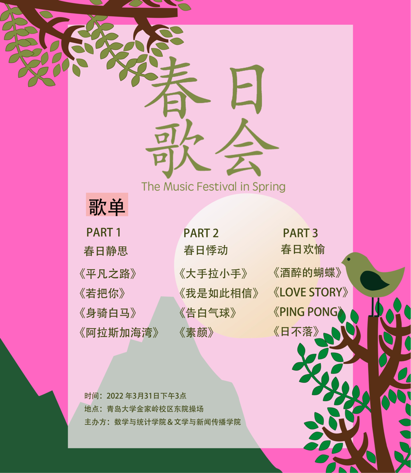 3月31日下午,文传学院和数统学院联合举办的“春日歌会”在金家岭校区东院操场顺利举办。