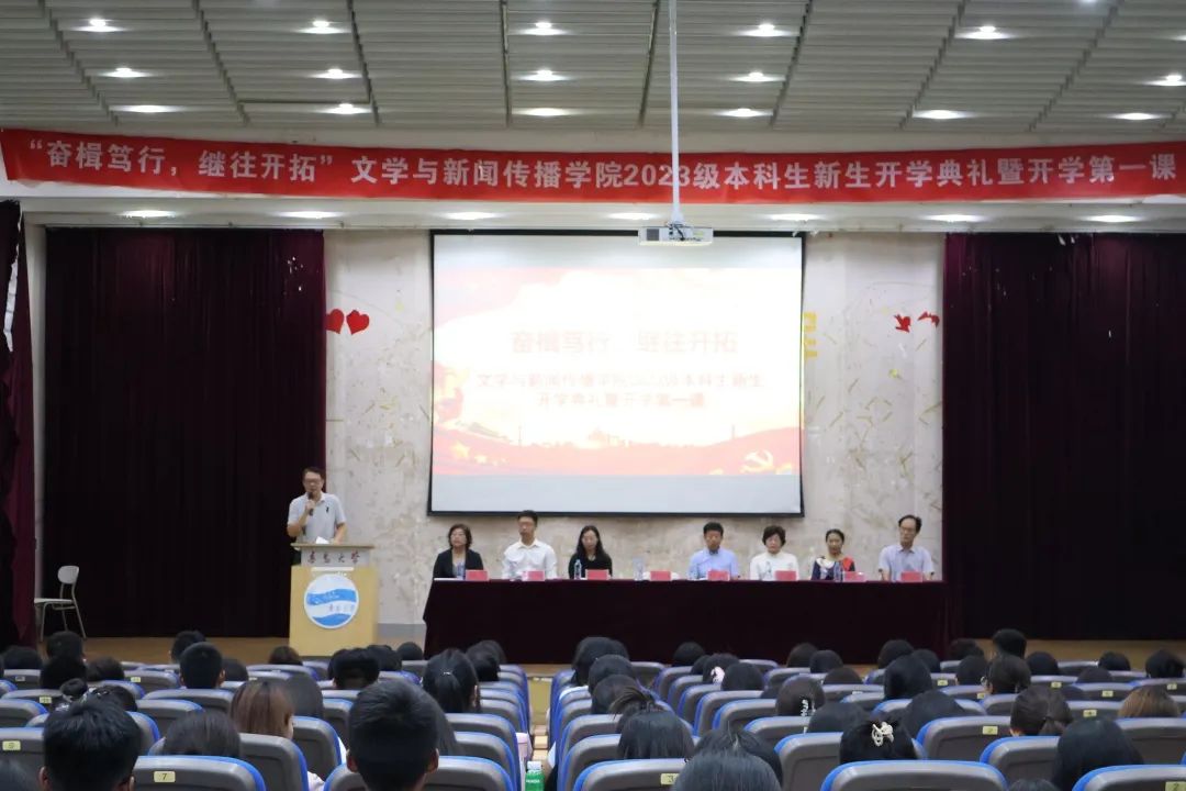 2023级本科生新生开学典礼暨开学第一课在金家岭校区西院图文中心四楼报告厅举行。院党委书记张辉、院长刘东方、院党委副书记戚昕、副院长张文彦、副院长周潇、院长助理耿志宏、院长助理高存玲、中文教育系主任杨宝春、团委老师孙晓萱、辅导员王凤娇、王宁宁以及新生各班班主任出席典礼,2023级全体本科新生参加、